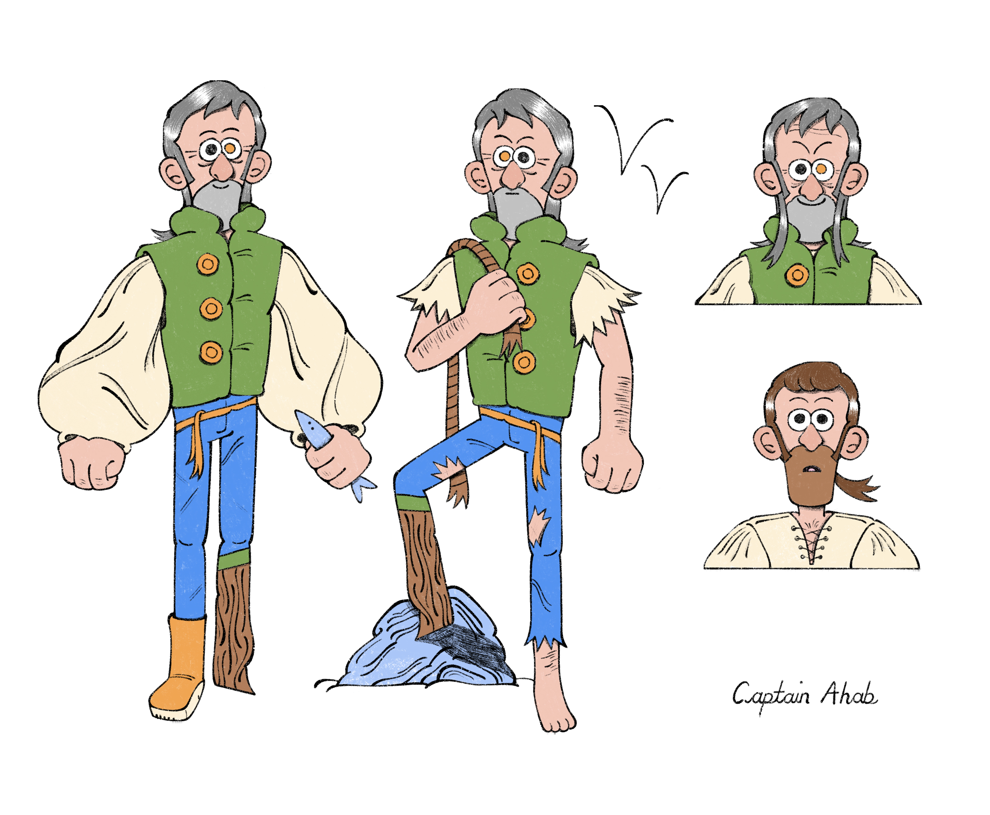 Character designs of Captain Ahab. For a hypothetical reimagined animation of the book